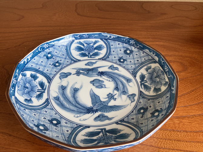 皿 寿文楽赤絵大皿 島荷平(醍醐窯)